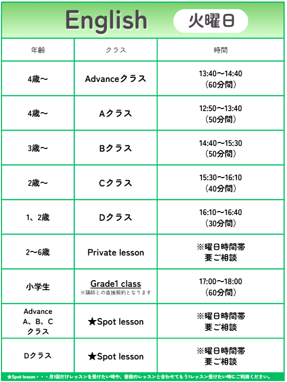 各スクールの体験、見学、お問い合わせはお電話もしくはメールにてご連絡ください。